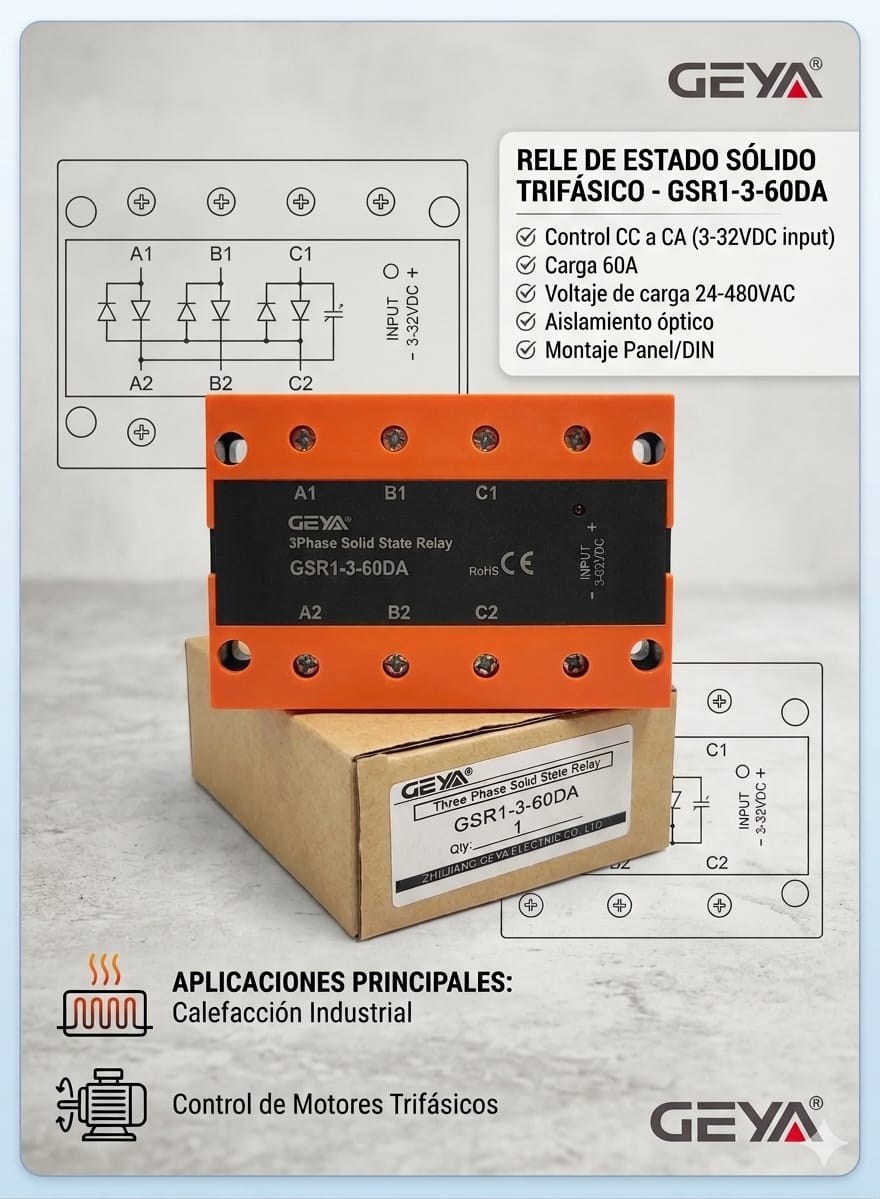GSR1-3-60DA RELE ESTADO SOLIDO 60A 3-32VDC/24-480VAC 50/60HZ GEYA