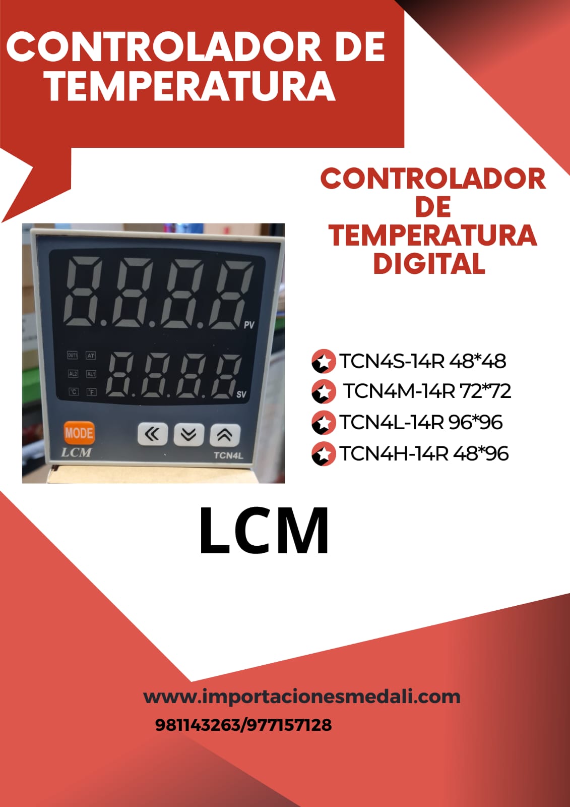 TCN4S-14RV CONTROLADOR DE TEMPERATURA 48X48MM 100-240VAC K/J/PT100 LCM
